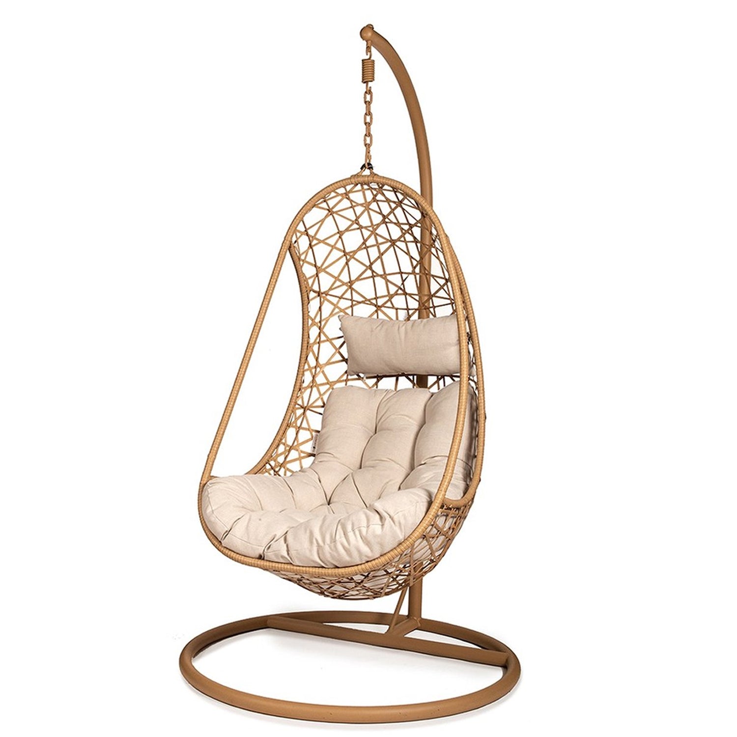Gemaakt met oog voor detail, biedt de Hanging Chair of Soul een perfecte balans tussen stevigheid en comfort. Het sterke frame is vervaardigd uit duurzaam staal en prachtig afgewerkt met een weerbestendige coating, zodat je jarenlang kunt genieten van deze stoel, zowel binnen als buiten. De zachte, met de hand geweven stof omhult je als een cocon, ideaal voor een goed boek, een middagdutje of gewoon om even te ontsnappen aan de drukte van alledag.